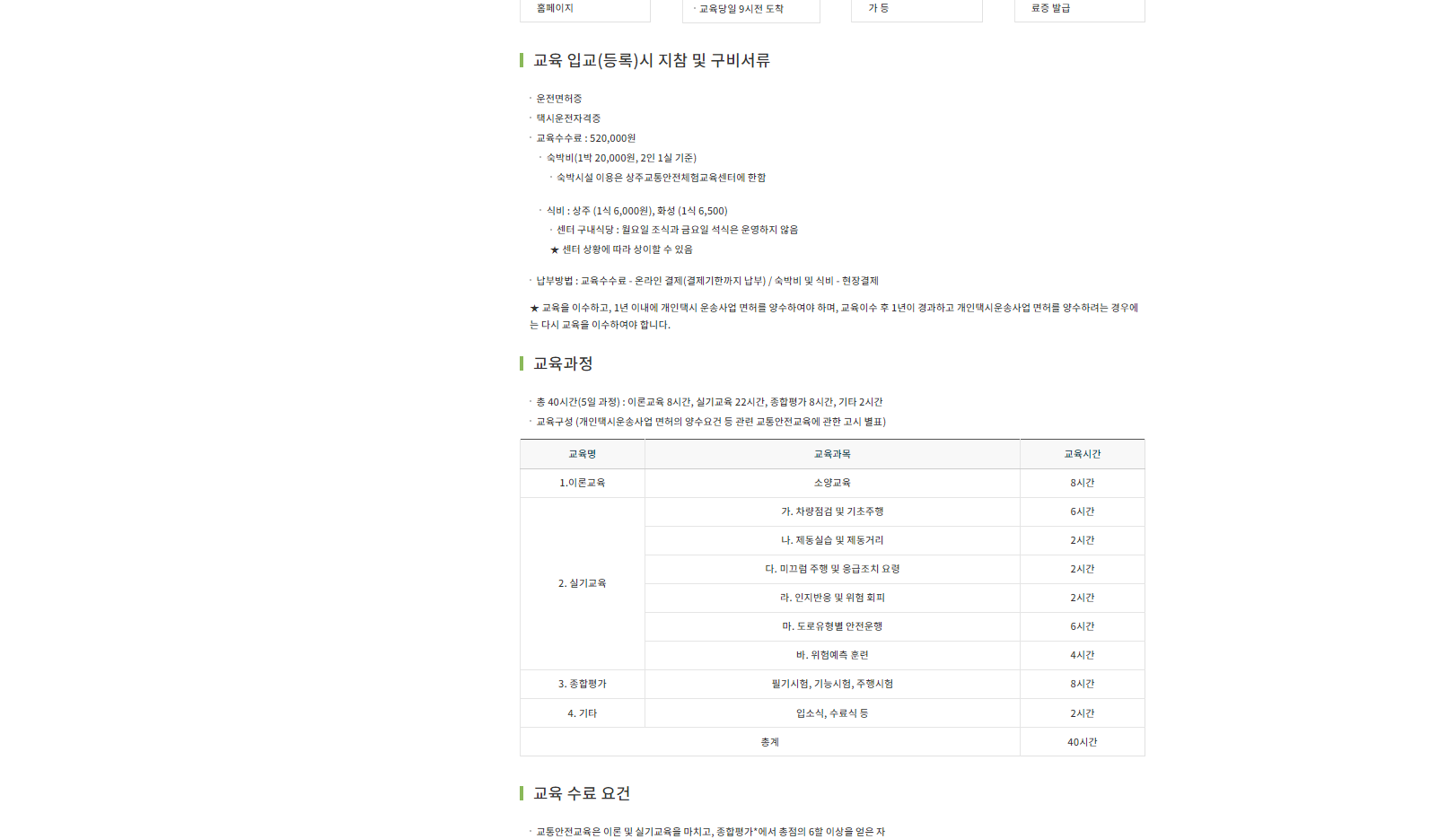 개인택시 양수교육 교육과정